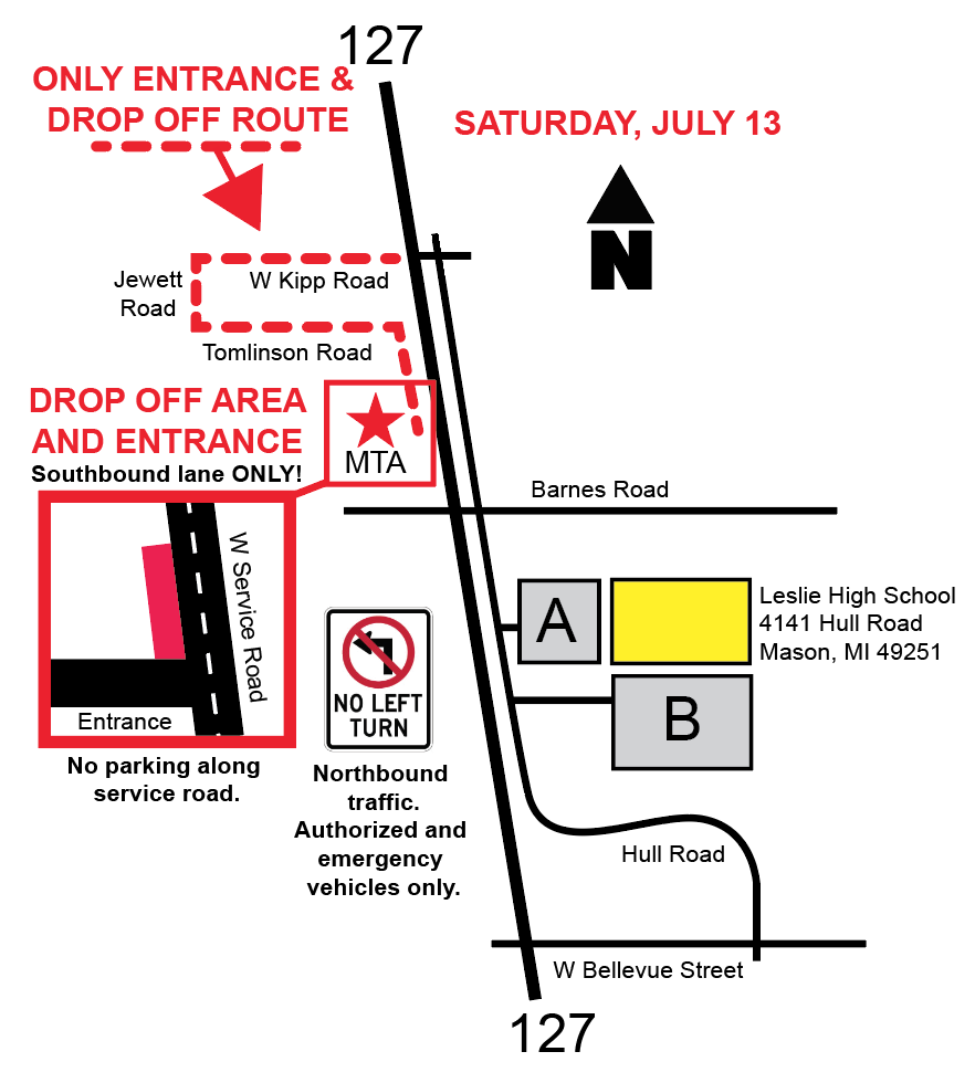 Overflow parking will be at LESLIE HIGH SCHOOL.
